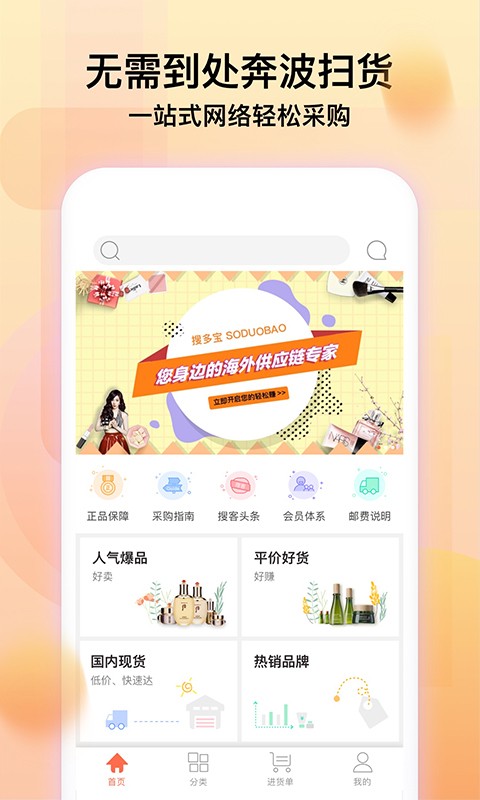 搜多宝app是一款专业韩妆采购平台,搜多宝拥有专业韩国采购团队,精挑细选海量低价正品韩国美妆产品,用户足不出户就可以轻松完成韩妆采购。