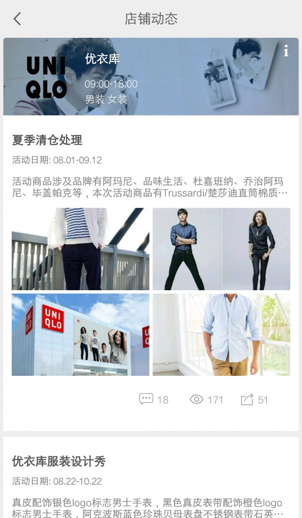 1店铺动态:门店促销活动或者店庆活动信息,同步推送相关用户。