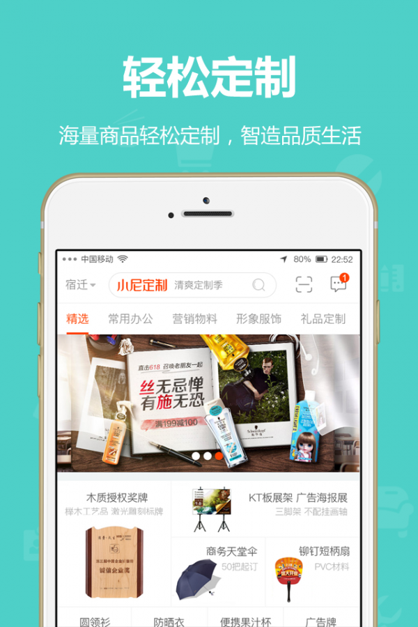 2、小尼自营商品,全面支持定制,用户可以自由搜索商品,并根据不同工艺和尺寸计算价格,方便快捷;