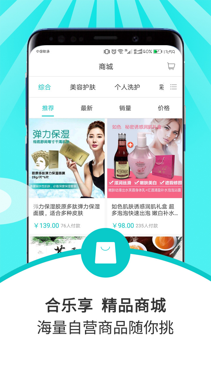 合乐享APP客户端提供首页信息展示、电子商务产品分类展示、电子商务产品在线交易,购物车,在线订单管理,在线支付,定位服务、附近商家,我的个人信息等。