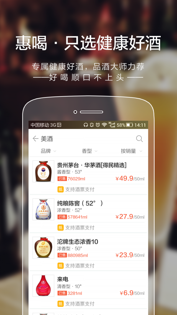 买餐送酒 :用APP买单即送酒,不花钱也能喝好酒