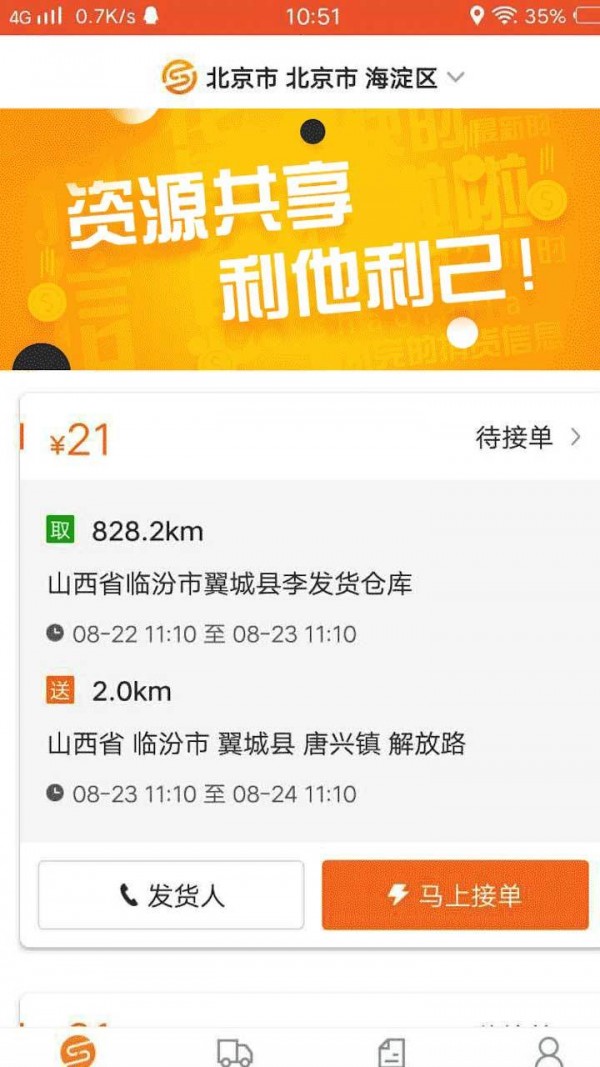 捎货人在捎啦啦注册并设置完成捎货区域、捎货时间、车辆信息后,即可查看匹配的捎货单信息、接单和捎货。