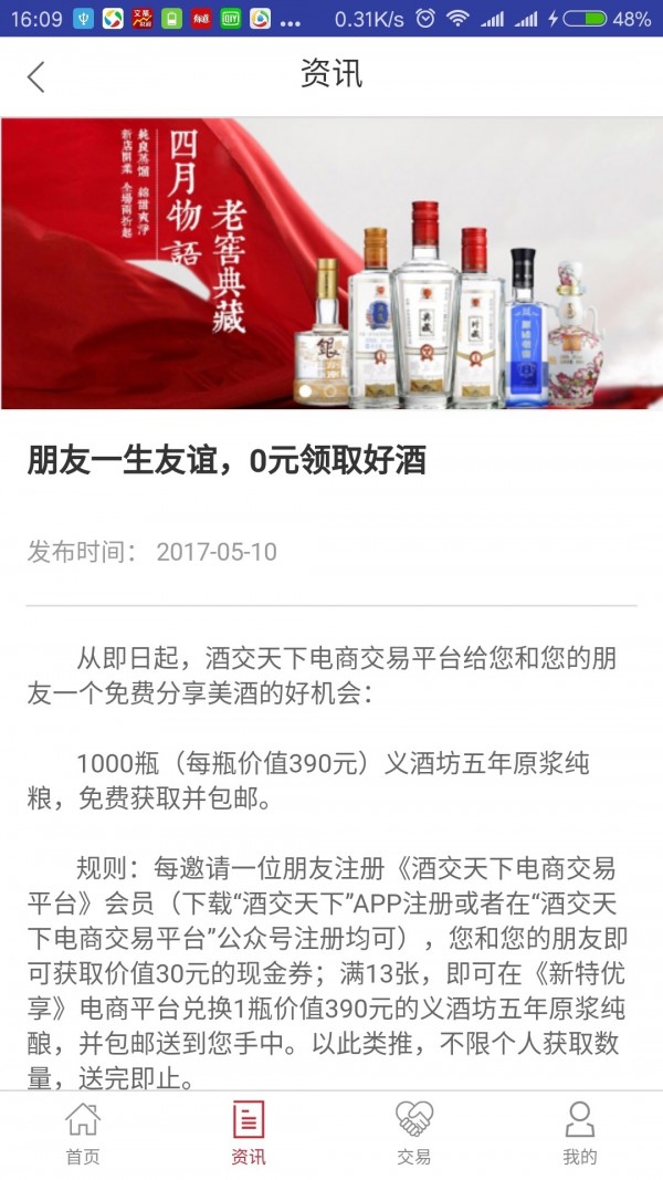 酒交天下电商致力于打造线上直销的模式,为消费者提供优质的正货酒品。客户在注册后可以登录个人中心,在其中查看“我的券”等相关资讯,即时受到各种优惠上新活动的推送。除此以外,还能通过邀请好友建立“我的团队”,从而获取优惠券和积分。在积分累计到一定程度后,可以进入“兑换商城”进行兑换,获赠相应的商品。