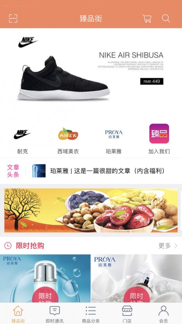 臻品街是由各商业协会主导,严格挑选在主流电商平台经营的TOP商家,以平台自营,企业直供方式线上销售商品,实现用户以工厂折扣价购买品牌。此外用户消费后获得额外积分红包,红包可等比例用于平台签约的线下实体店以及平台认证的微商店铺,实现线上线下结合使消费价值更大化。