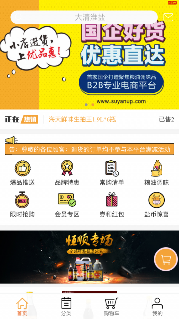 苏盐优品惠是苏盐集团全力打造的B2B电商平台,纯自营模式,国企信誉,为终端商超提供优质、价廉、丰富的商品选择。线下拥有70个仓库遍布江苏各市县,为终端用户提供优质快捷的配送服务。