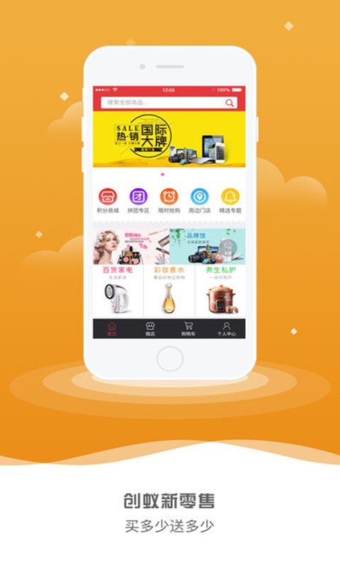 创蚁app是一款在线购物软件,创蚁app广州创蚁网络科技有限公司创建的F2B2B2C+O2O模式的移动应用,线上商城与线下商家完美结合,同样的产品同样的价格,在创蚁商城消费即可获得等额积分,是一款非常实用的手机网购软件,超多商品在线低价选购哦!给您带来满意的购物体验哦