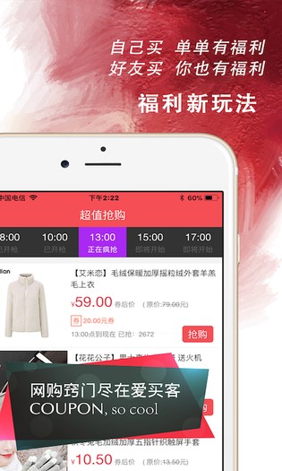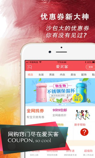爱买客app是一款安全便捷的网络购物应用,爱买客app精挑细选淘宝最新最流行的商品,提供智能找券功能,帮助网购爱好者用更少的钱买到更好的商品,省钱持家不剁手,购物更轻松。