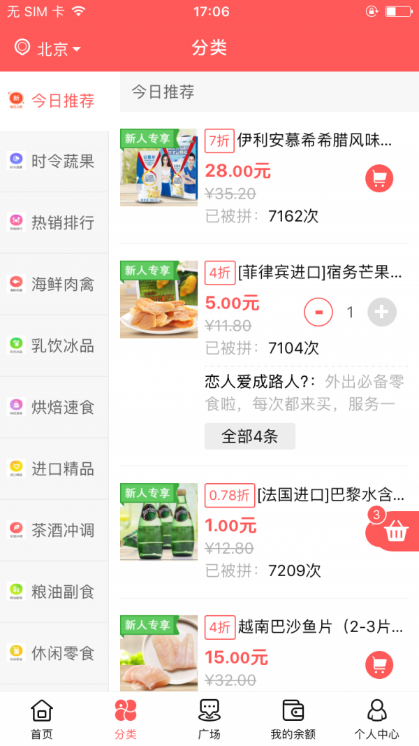拼食惠主要围绕吃货服务的平台,根据您的喜好为您推荐新奇商品。您更可以在广场晒出你的吃货记录,让您成为一名吃货大咖。