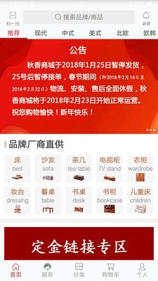 秋香商城app是一款专门为客户定制家具的一款服务APP。家具品牌频道,提供各类家具设计家具搭配家具图片等*资讯,家具品牌行情导购等实惠信息,还有活跃家具产品种类等您观赏选购,一起打造专业的家具网站。