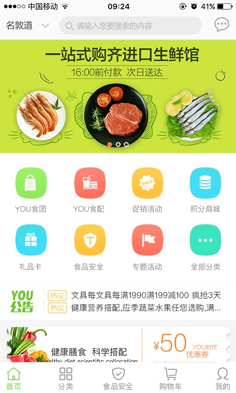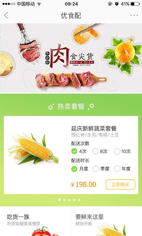 1、优食配:精选宅配商品,一次购买,分批配送!