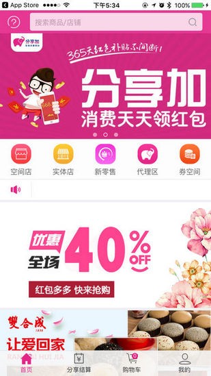 分享加全球共享平台:商家以10%-40%比例的优惠为空间,消费者通过在平台线上空间店或线下实体店进行消费,平台都对其产生的消费价值进行利润二次分配,并以红包补贴形式发放给消费者和商家,让消费者快乐购物、轻松分享。
