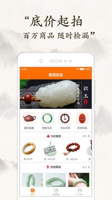 惠拍优品是基于移动端的文玩垂直类电商,专注线上拍卖交易。平台模拟线下实时拍卖现场,提供便捷的操作方式、丰富多样的拍卖形式让藏友们在游戏式的趣味拍卖中以意想不到的价格捡到漏,致力于让所有用户用更少的钱,过更有艺术品位的生活。