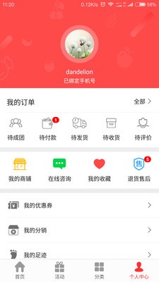 7、我的商铺--修改店铺信息、商品管理、订单管理、商品上传、营业状况显示及提现、活动商品查看