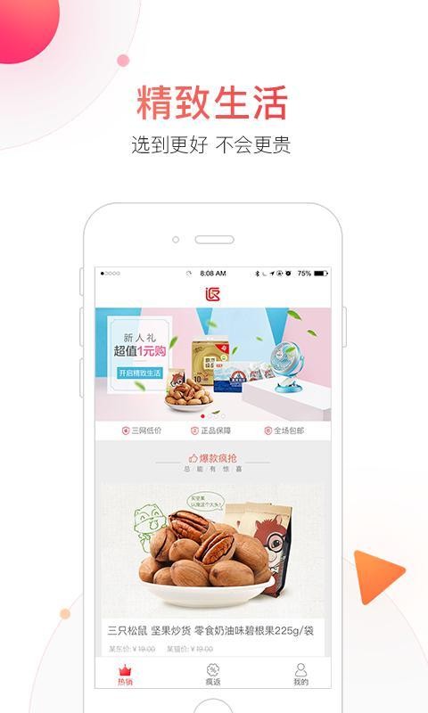 返吧生活app是一款电商购物类软件,返吧生活为消费者推荐优质商品,清晰有序,轻松选购到自己中意的商品,还能享受消费福利,让消费更省钱。