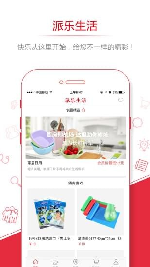 派乐生活app是一款专注于生活用品销售的移动商城,在派乐生活app中用户们可便捷的查询商品详情,了解其相关讯息,参与实惠的限购活动等。