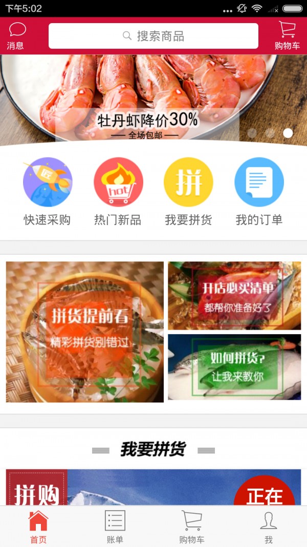 2、我要拼货功能:大家一起拼货,买到物美价廉的生鲜品。