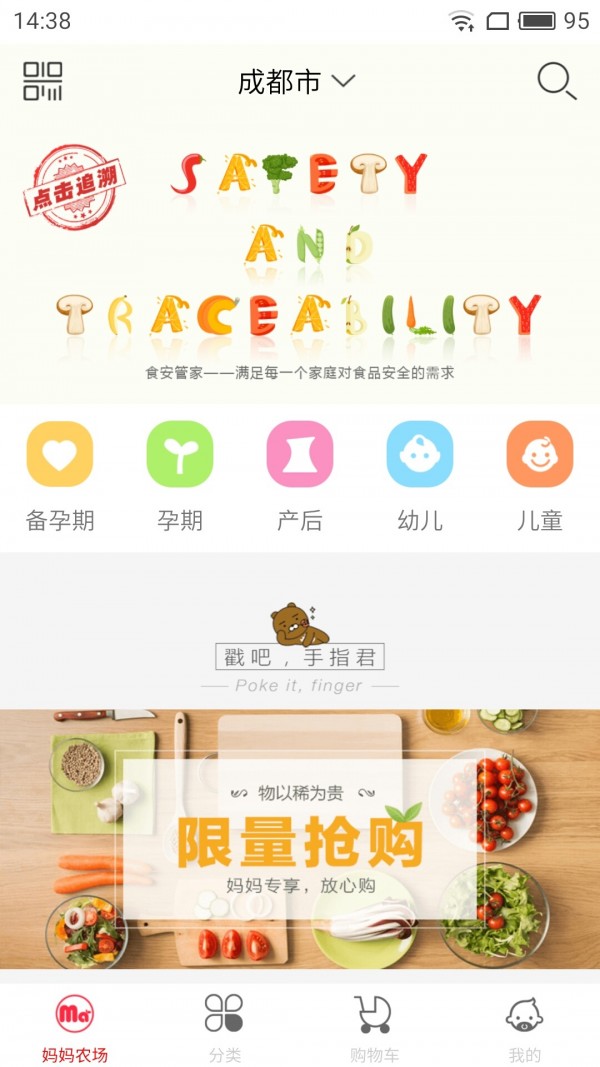 妈妈农场呈现给用户的是来自几十万户农民严格按照“食安管家”农产品管理规范及国家认证机构检验标准而生产的优质农产品。这些农产品在经过土壤抽检、环境检测、农资定制、生产监督、样品测试等一系列生产流程控制以后,产品专员再将样本的检测参数报告送由妈妈农场的营养师团队(均已获得国家资质认证)根据不同阶段的孕婴童人群制定丰富的组合搭配。同时,妈妈农场拥有自己的仓库和配送体系,所有用户的订单商品均会在恒温配送前经过仓库的二次抽检和速测,以真正保障完整的追溯流通。