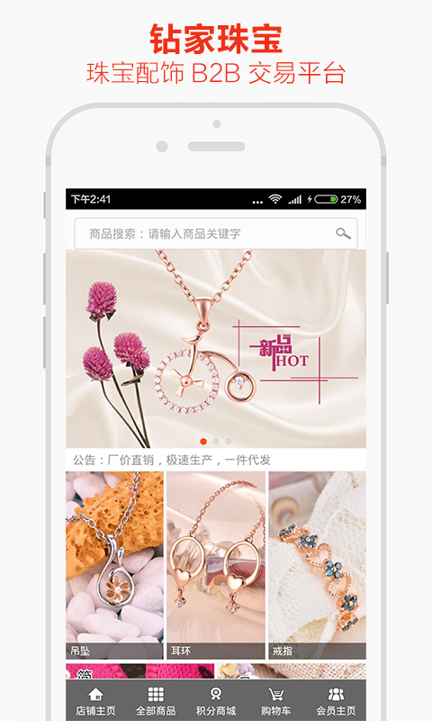 钻家珠宝致力打造专业的B2B交易平台,是钻加珠宝公司产品展示、货品交易、商情交流,获取行业新资讯、销售价格,一键分享到朋友圈等功能。