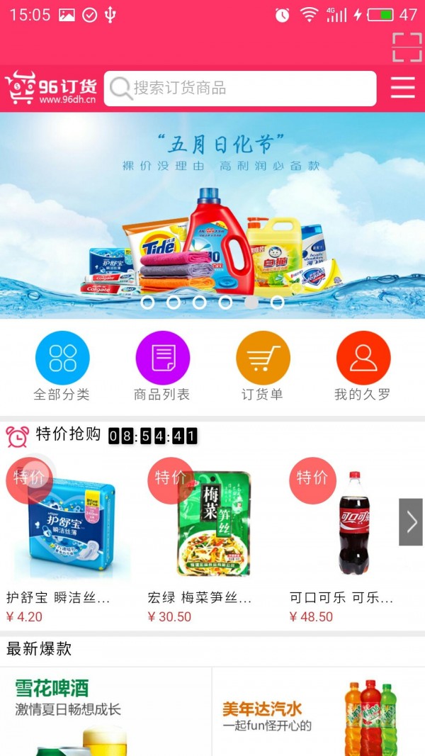 96订货包含食品批发,副食品批发,饮料批发,日化用品批发,酒水批发,冲饮批发,牛奶饮品批发,营养保健品批发,家居用品批发等服务。96订货,一站配齐,做翘脚老板