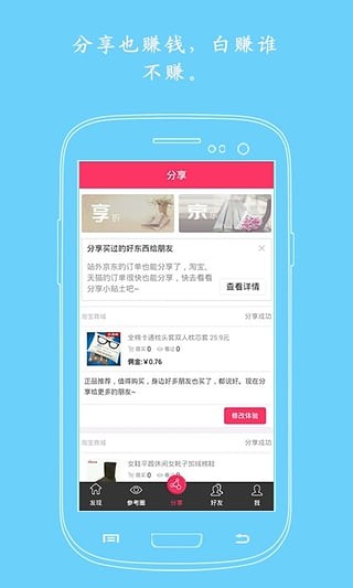 享折是打折宝旗下的一款购物APP,让您足不出户体验优质的导购服务,分享的宝贝被购买更有佣金可以转!还不行动起来?