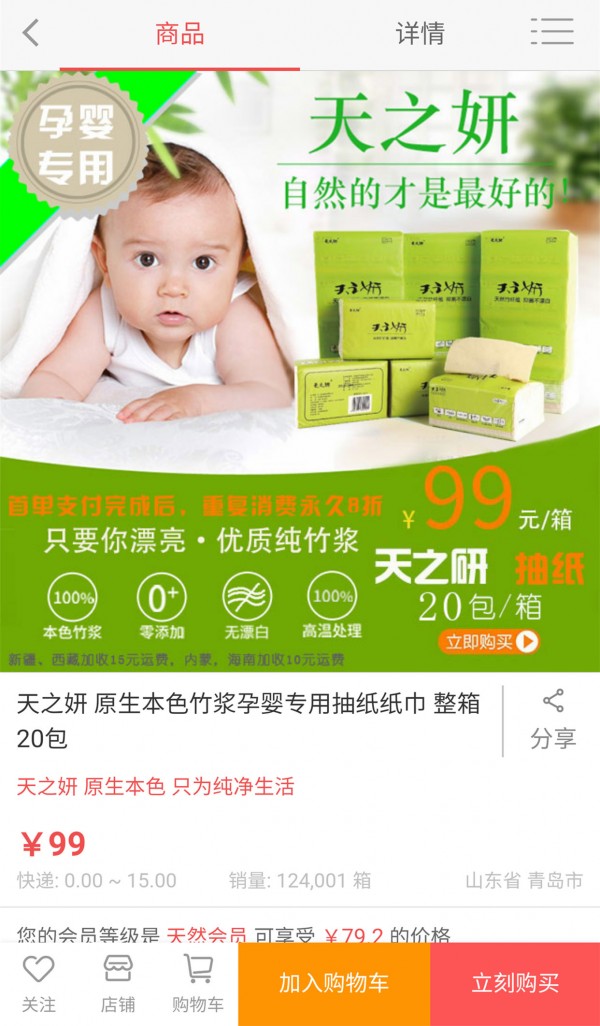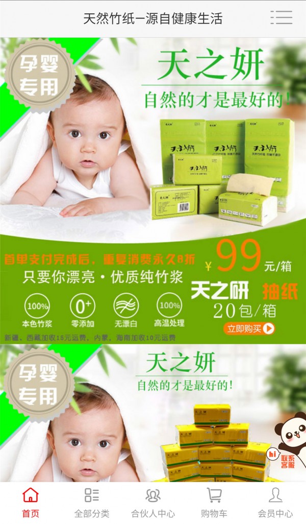 天然竹纸客户端是为用户精心推出的满足其快速购买生活用纸的一款APP,旨在为客户打造纯净生活用纸习惯,指尖上的纯净生活。二次购买全场八折,为客户打造低成本原生态体验。推荐朋友购买还可获取好友天然金哦!