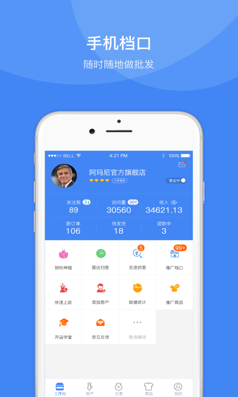7.全面统计,店铺流量统计、交易分析,为您展现多维度的店铺数据统计。