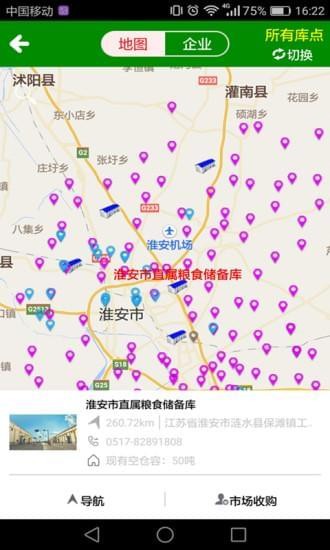满意淮粮APP由淮安市粮食局委托中科怡海高新技术公司设计开发,目前包括政策信息、库点分布、质价标准、价格测算、在线预约、联系我们等6个功能模块。