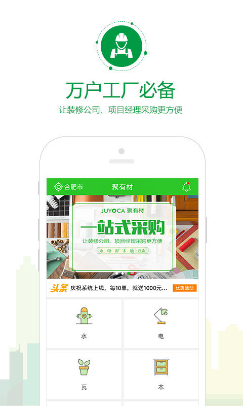 聚有材app是一款专业建材辅材采购平台,精选优质辅材商品,涵盖种类丰富,为装修公司、项目经理采购辅材更方便。