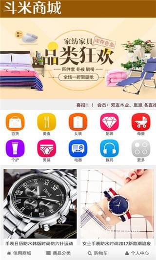 斗米商城app集美食,男装,女装,配饰,母婴,个护等等为一体的手机购物类应用,