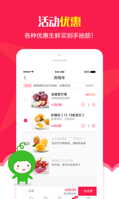 专注于优质生鲜的移动电商。我们为了满足您挑剔的味蕾,从源头上精选来自全国各地的水果、蔬菜、肉禽蛋品、水产海鲜、烘焙速食、零食酒水等商品,为您提供一站式生鲜商品购买服务。