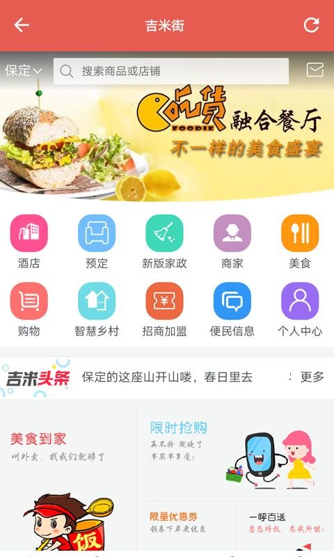 吉米街平台将为广大用户提供日常生活o2o服务,包含餐饮美食、休闲娱乐、配送购物、电商直播、信息传媒等一系列本地生活服务。