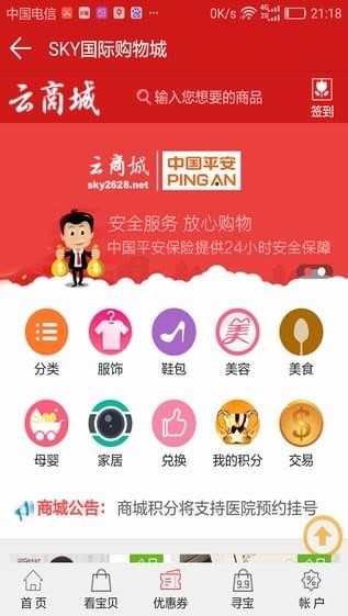 目前云世纪商城已经覆盖家居生活用品、数码家电、房产、汽车、宾馆住宿、出差旅行等百姓生活的所有方方面面。用户消费后商城都将赠送不同比例的积分。