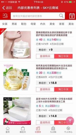 消费者:淘宝购物领券享受折上折,比如一件100元的商品,领取优惠券可以直接抵现10%-60%,还赠送积分,积分可在会员超市支付快递费免费领取商品,邀请好友同时也赚积分;