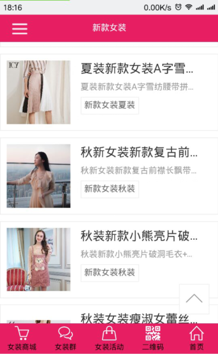 新款女装app是一款便捷的购买女装的软件,新款女装app是一款便捷的女装导航软件,通过新款女装,你可以准确、快速的购买到您喜欢的各种潮流女装。