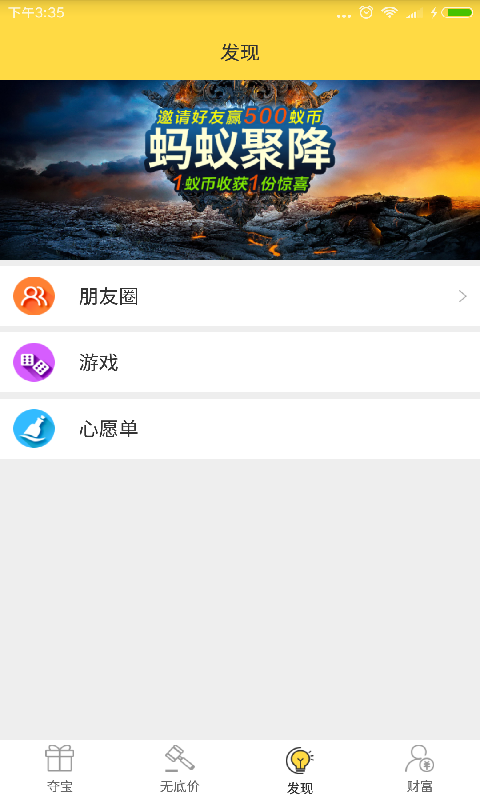 蚂蚁聚降app是一款网络购物应用,蚂蚁聚降app为用户打造一个夺宝购物平台,让用户可以通过软件体验一元夺宝的购物方式,轻松夺宝。