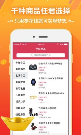 全场商品初始价为0,每拍一次价格只上涨0.1元,10秒内无人竞争,您即可以前所未有的低价带走心仪商品