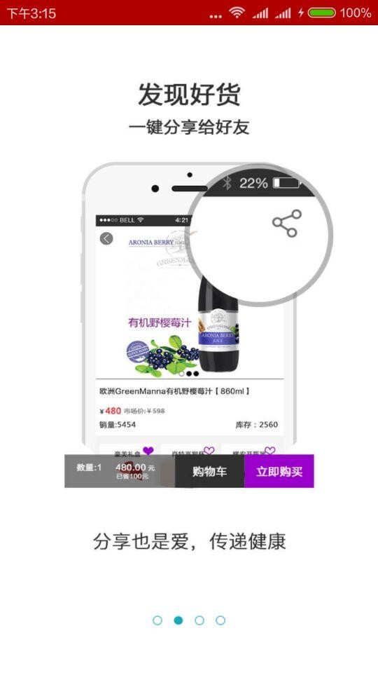 野樱梅APP设计初衷:野樱梅立足于云天团“健康、美味、营养、安全”的理念下,处于跨境电商火热的时代,为了使消费者更快捷、方便的能及时购买到GreenManna野樱梅汁,开发了APP软件这一购物渠道。