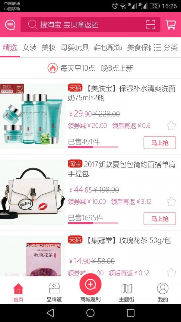 【品牌返】每日10点上新,知名品牌限时折扣,7天包退换。