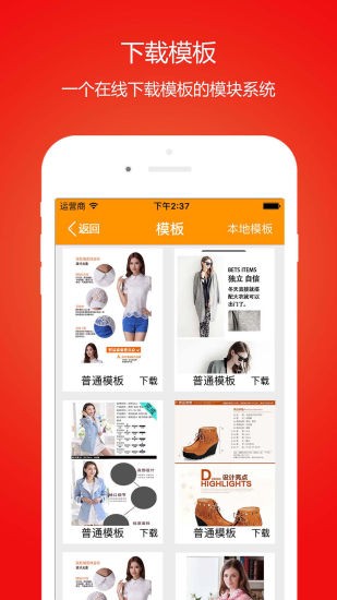 【下载模板】是一个在线下载模板的模块系统。可以选择自己需要的模板种类然后从里面下载自己需要的详情页的模板。