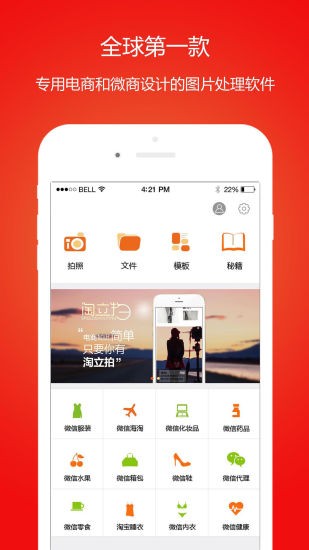 拍立淘app是一款帮助卖家制作宝贝详情的手机APP,拥有海量的详情模板,让不会美工的卖家也能快速便捷地做出具有美感的详情描述!