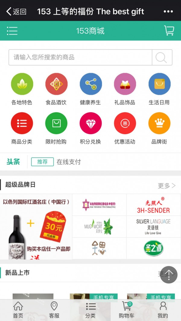153商城是一个B2B2C的移动购物商城,系统快速推荐需求的商品,下单方便,覆盖微信支付、支付宝支付、银联支付等移动支付方式,快递接口对接不同的快递公司。