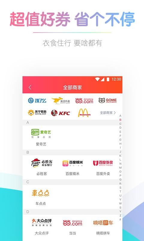 1.轻松领取淘宝,京东,唯品会,聚美优品,网易严选,考拉海淘,当当,苏宁,国美,1号店,各类电商超值优惠券,购物先到券之家,Shopping也持家!