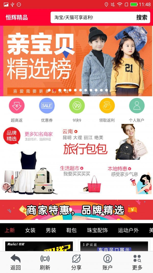 恒辉精品精选全网最优惠的宝贝,返利高达80%,恒辉精品常去的商城一触即达,搜索宝贝更便捷,查看返利更简单!恒辉精品支持500多家商城购物返利,随时随地拿返利!居家返利手机版,最省钱的手机网购神器!!!
