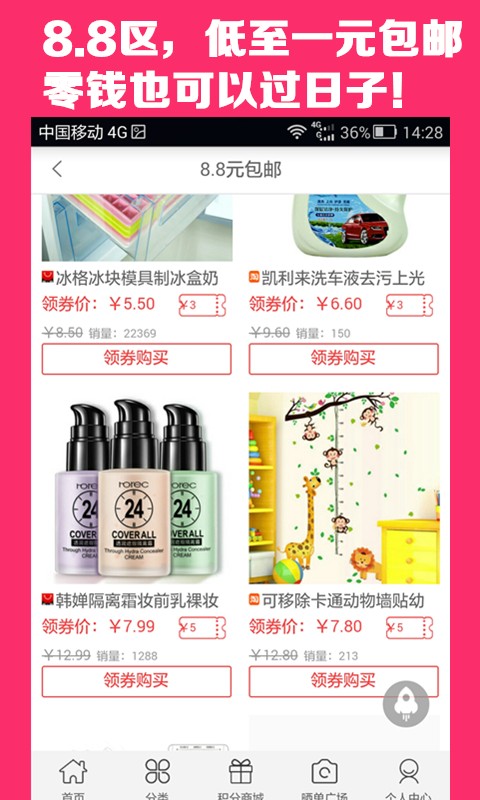 4、8.8封顶包邮区(券后低至1元包邮),让您零钱也能过日子。