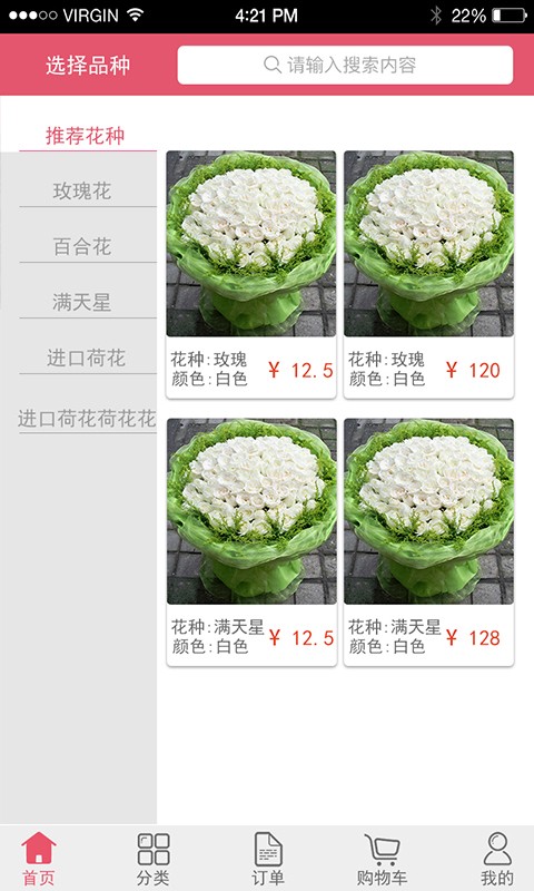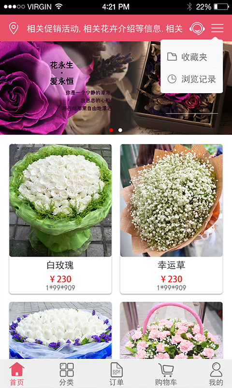 4、收藏夹与浏览记录可以保存浏览过或者喜欢的任何一款鲜花商品5、搜索鲜花品名即可马上找到亲们可以购买的现货品种