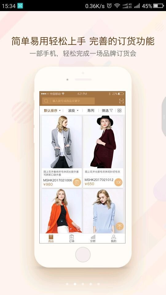 原创订货app是一款线上订货软件,通过原创订货app快速筛选自由选择、组合,只需指尖点点,就可以轻松完成品牌订货,让订货更高效。