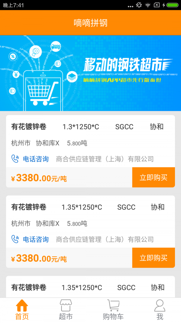 嘀嘀拼钢是商合供应链管理(上海)有限公司倾心打造的钢铁领域的全端供应链电子商务服务市场。专注于拓展镀锌板材领域的垂直营销网络,我们向所有参与者提供技术和服务,依托互联网、大数据、移动互联、云服务等技术手段为钢铁流通领域创造全新的商业交易模式。