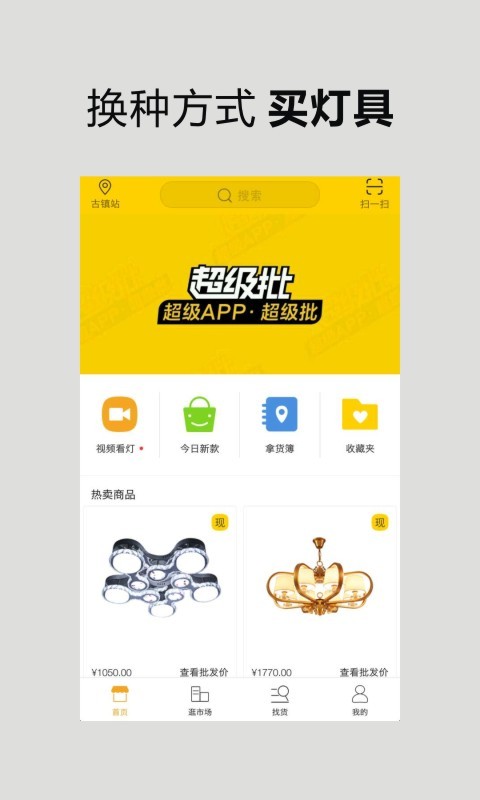 超级批app是一款针对灯饰行业推出的线上进货软件,拥有一手优质货源,让您足不出户就可以了解市场新款、爆款,快速进货。