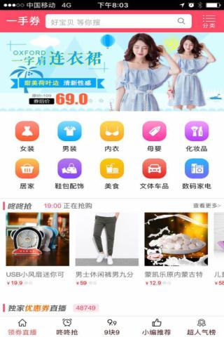 天猫淘宝,第一手领券平台!平台提供超值购物内部券,精选品质商品,支持用户搜索商品优惠券,“领券再下单”,让您实现平日购物省钱最大化!每天精选top100,整点抢购,超级人气商品,9块9包邮,人工筛选,全场包邮,由平台与商家专业砍价,让利买家!