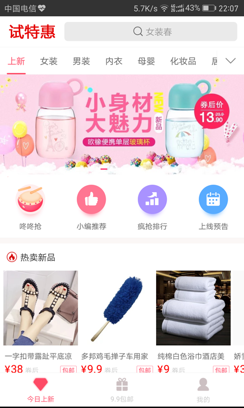 试特惠是一家集合淘宝天猫优惠折扣的平台!每天更新几千款优惠特价产品,纯人工筛选验货,限时限量特卖,1折起包邮!要方便、要实惠、更要品质,那么请来试特惠,满足你的小韧性!